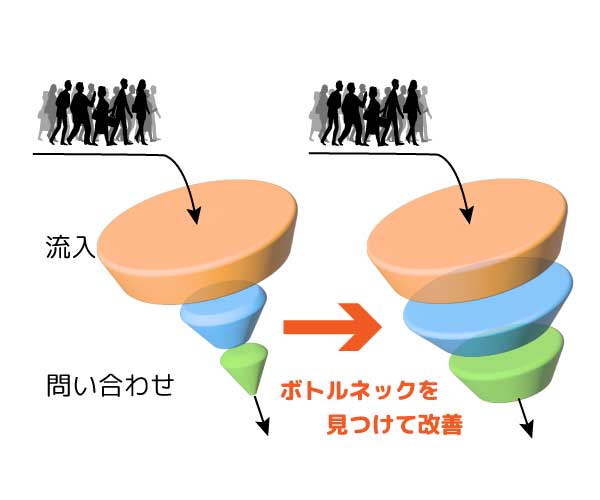 流入から問い合わせまでの間のボトルネックを見つけて改善。