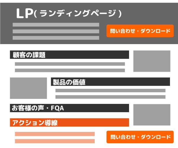 SEOで技術コンテンツに流入してきた顧客や広告をクリックした顧客を問い合わせ・資料請求・購入に導く役割を持つページがランディングページです。